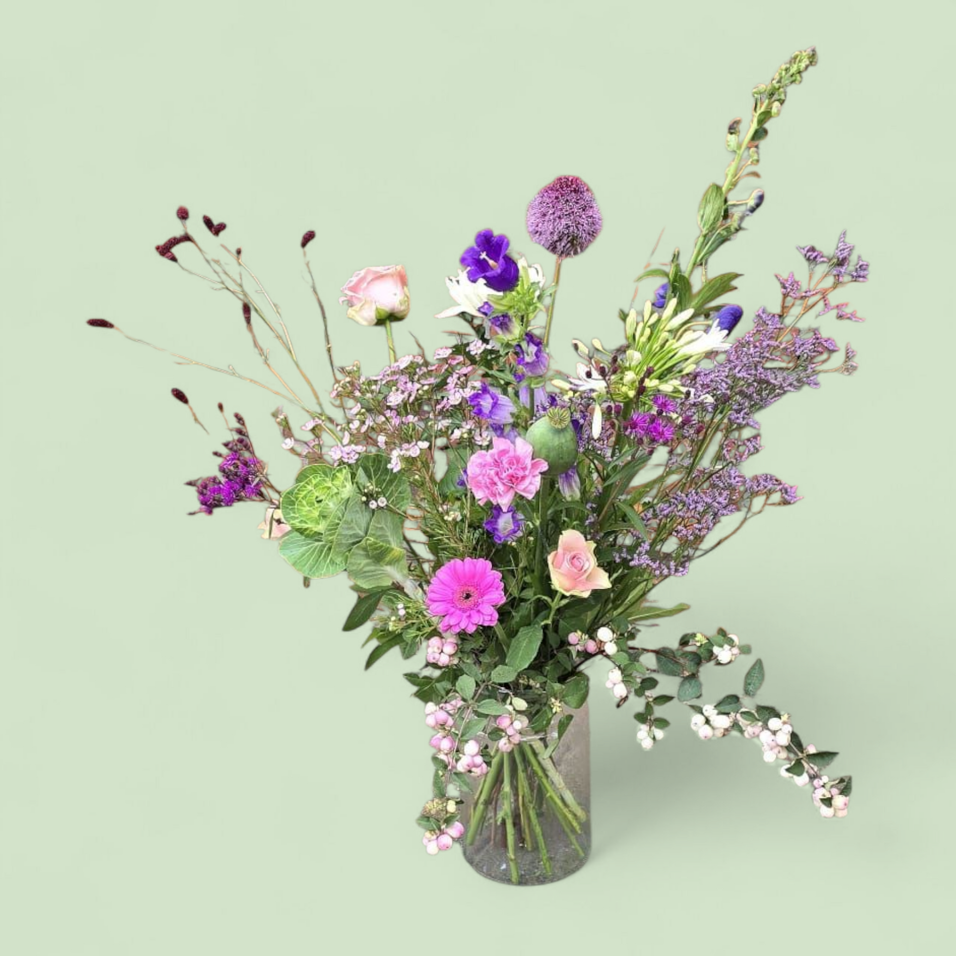 Houd er rekening mee dat het boeket kan afwijken van de foto door de beschikbaarheid van seizoensbloemen. De stijl en waarde blijven altijd gelijk.